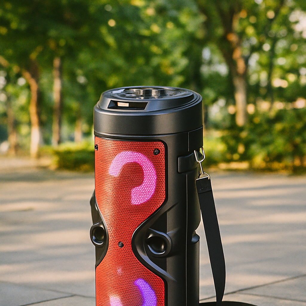 Scopri la Cassa di Altoparlante Bluetooth che unisce design moderno e prestazioni audio straordinarie. Compatta, elegante e facile da trasportare, trasforma ogni momento in un’esperienza sonora unica. Grazie alle luci LED integrate e al suo look accattivante, diventa la protagonista di ogni ambiente — dalla tua stanza al parco, fino alle serate con gli amici.